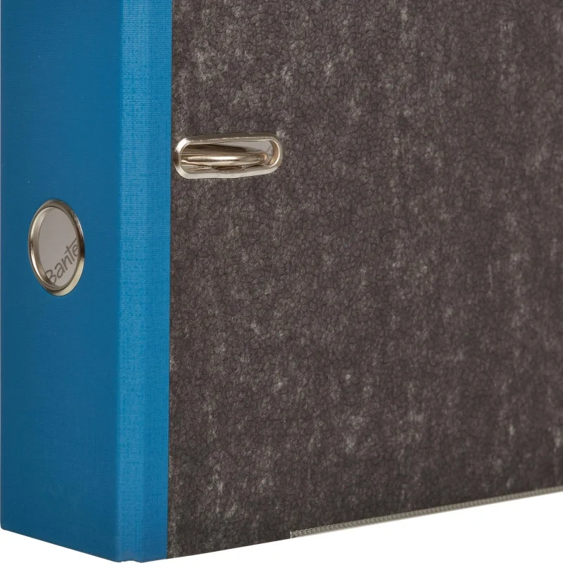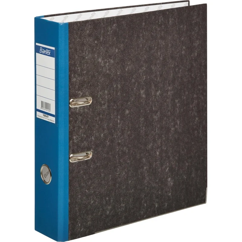 Папка-регистратор Bantex (Attache Selection) изготовлена из прочного картона толщиной 1,9 мм, покрытого с внешней стороны бумагой под мрамор, произведенной в Великобритании, а с внутренней стороны — бумагой с печатью Bantex. На корешке шириной 70 мм, изготовленном из бумвинила, есть карман со сменной этикеткой и круглое кольцо для удобного захвата.