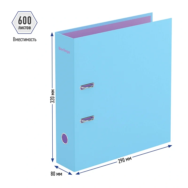 Папка-регистратор Berlingo серии Haze формата А4 с арочным механизмом идеальна для создания архива. Папка вмещает до 600 листов. Ширина корешка составляет 80 мм. Выполнена в стильных пастельных цветах: голубая внешняя сторона и сиреневая внутренняя. Изготовлена из жёсткого износостойкого картона с покрытием из матовой ламинированной бумаги. Папка имеет арочный механизм из качественного металла. Конструкция разработана с учётом всех особенностей эксплуатации. Эргономичное отверстие в корешке помогает быстро снять папку с полки. На внутренней стороне обложки папка-регистратор имеет поле для записи. Размер папки – 320*290*80 мм. Ориентация папки – вертикальная.