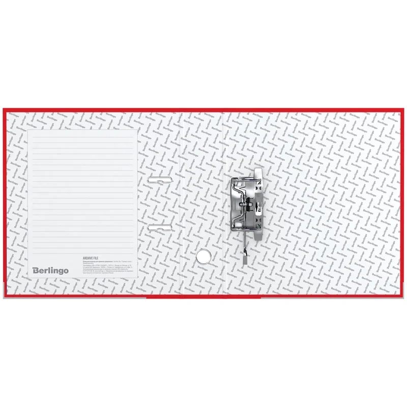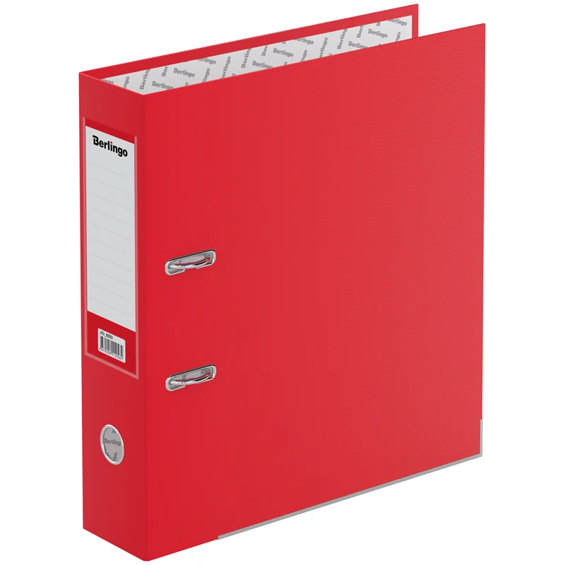 Папка-регистратор Berlingo серии Hyper формата А4 идеальна для создания архива. Папка размером 320*290*80 мм изготовлена из жёсткого износостойкого картона с односторонним покрытием из качественного бумвинила красного цвета. Папка эффективно экономит офисное пространство. Ширина корешка составляет 80 мм. Конструкция разработана с учётом всех особенностей эксплуатации. Выгодно отличается надёжным арочным механизмом из качественного металла, наличием кармана на корешке со сменным информационным ярлыком для маркировки, полем для записей на внутренней стороне обложки, отверстием для удобного снятия папки с полки. Для повышения износостойкости нижние грани укреплены металлическим кантом.