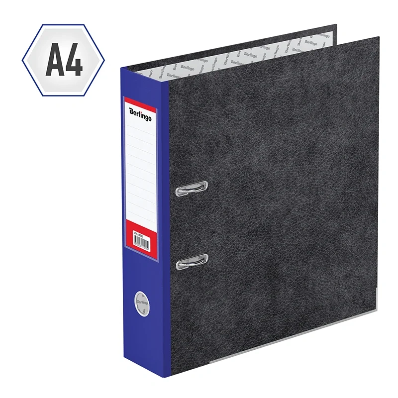 Папка-регистратор Berlingo серии Hyper формата А4 идеальна для создания архива. Папка размером 320*290*80 мм изготовлена из жёсткого износостойкого картона с односторонним покрытием из специальной ламинированной бумаги «под мрамор» и синим корешком. Папка эффективно экономит офисное пространство. Ширина корешка составляет 80 мм. Конструкция разработана с учётом всех особенностей эксплуатации. Выгодно отличается надёжным арочным механизмом из качественного металла, наличием кармана на корешке со сменным информационным ярлыком для маркировки, полем для записей на внутренней стороне обложки, отверстием для удобного снятия папки с полки. Для повышения износостойкости нижние грани укреплены металлическим кантом.