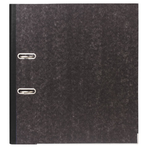 Папка формата А4+ с вертикальной ориентацией изготовлена из высококачественного износоустойчивого картона с покрытием под 'мрамор'. Ширина корешка в 50 мм позволяет разместить до 350 листов. Нижние края папки защищены металлическими уголками, что увеличивает срок службы в 2 раза. Прорези для колец на внешней крышке позволяют оставаться папке закрытой даже при большом количестве бумаг, а надежный арочный механизм легко справляется с ежедневными нагрузками. Корешок снабжен этикеткой для маркировки содержимого, что позволяет структурировать информацию.