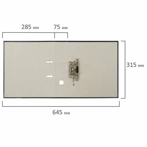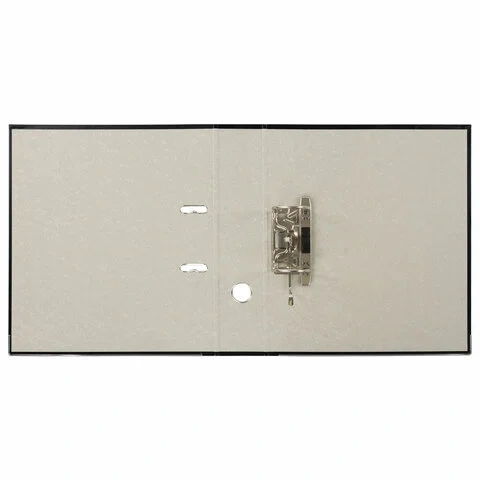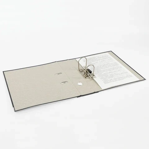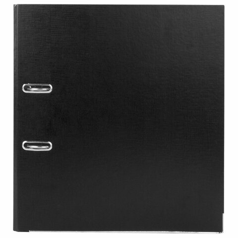 Папка формата А4 с вертикальной ориентацией изготовлена из плотного картона, ламинированного черной пленкой из полипропилена, который не имеет резкого запаха и отличается долговечностью и морозоустойчивостью. Благодаря такому плотному покрытию допустима влажная уборка изделия. Ширина корешка в 75 мм позволяет разместить до 500 листов. Нижние края папки защищены металлическими уголками, что увеличивает срок службы в 2 раза. Прорези для колец на внешней крышке позволяют оставаться папке закрытой даже при большом количестве бумаг, а надежный арочный механизм легко справляется с ежедневными нагрузками. Корешок снабжен этикеткой для маркировки содержимого, что позволяет структурировать информацию. Такая папка станет незаменимым помощником для работников с документацией, а строгий черный цвет папки-регистратора отлично впишется в офисныйй интерьер.