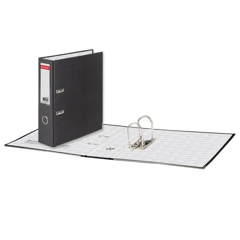 Папка формата А4 с вертикальной ориентацией изготовлена из качественного износоустойчивого картона с ПВХ покрытием. Благодаря такому плотному покрытию допустима влажная уборка изделия. Ширина корешка в 80 мм позволяет разместить до 600 листов. Нижние края папки защищены металлическими уголками, что увеличивает срок службы в 2 раза. Прорези для колец на внешней крышке позволяют оставаться папке закрытой даже при большом количестве бумаг, а надежный арочный механизм легко справляется с ежедневными нагрузками. Корешок снабжен этикеткой для маркировки содержимого, что позволяет структурировать информацию. Такая папка станет незаменимым помощником для работников с документацией, а классический черный цвет отлично впишется в офисный интерьер.