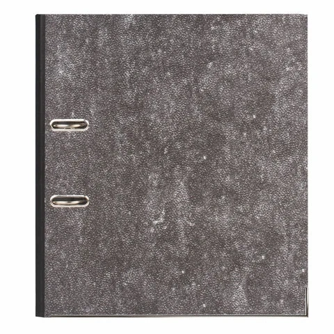 Папка формата А4 с вертикальной ориентацией изготовлена из высококачественного износоустойчивого картона с покрытием под 'мрамор'. Ширина корешка в 80 мм позволяет разместить до 600 листов. Нижние края папки защищены металлическими уголками, что увеличивает срок службы в 2 раза. Прорези для колец на внешней крышке позволяют оставаться папке закрытой даже при большом количестве бумаг, а надежный арочный механизм легко справляется с ежедневными нагрузками. Корешок снабжен этикеткой для маркировки содержимого, что позволяет структурировать информацию.