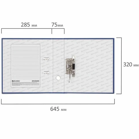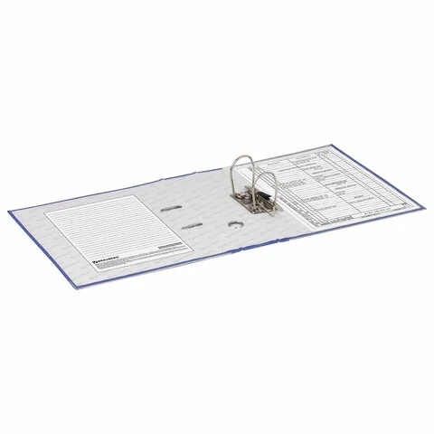 Папка формата А4 с вертикальной ориентацией изготовлена из высококачественного износоустойчивого картона с синим покрытием. Ширина корешка в 75 мм позволяет разместить до 500 листов. Нижние края папки защищены металлическими уголками, что увеличивает срок службы в 2 раза. Прорези для колец на внешней крышке позволяют оставаться папке закрытой даже при большом количестве бумаг, а надежный арочный механизм легко справляется с ежедневными нагрузками. Синий корешок снабжен этикеткой для маркировки содержимого, что позволяет структурировать информацию.