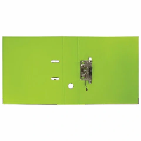 Папка-регистратор BRAUBERG 'EXTRA' в формате А4 вертикальной ориентации - классический вариант хранения документов. Чем толще в папке корешок, тем больше листов можно расположить: ширина корешка в 75 мм позволяет разместить до 500 листов. Изготовлена из плотного картона, ламинированного с двух сторон цветной яркой пленкой из полипропилена, который не имеет резкого запаха, более долговечный и морозоустойчивый. Благодаря такому плотному покрытию допустима влажная уборка изделия. Нижние края папки защищены металлическим уголком, что позволяет служить в 2 раза дольше. Прорези для колец на внешней крышке позволяет оставаться папке закрытой даже при большом количестве бумаг. Яркий салатовый цвет папки-регистратора серии 'EXTRA' - смелое решение, чтобы разбавить серые рабочие будни.
