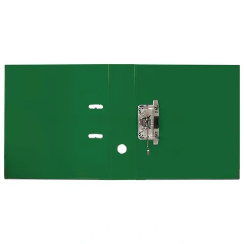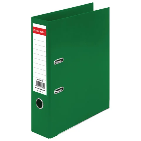 Папка-регистратор BRAUBERG 'EXTRA' в формате А4 вертикальной ориентации - классический вариант хранения документов. Чем толще в папке корешок, тем больше листов можно расположить: ширина корешка в 75 мм позволяет разместить до 500 листов. Изготовлена из плотного картона, ламинированного с двух сторон цветной яркой пленкой из полипропилена, который не имеет резкого запаха, более долговечный и морозоустойчивый. Благодаря такому плотному покрытию допустима влажная уборка изделия. Нижние края папки защищены металлическим уголком, что позволяет служить в 2 раза дольше. Прорези для колец на внешней крышке позволяет оставаться папке закрытой даже при большом количестве бумаг. Глубокий зеленый цвет папки-регистратора серии 'EXTRA' - смелое решение, чтобы разбавить серые рабочие будни.