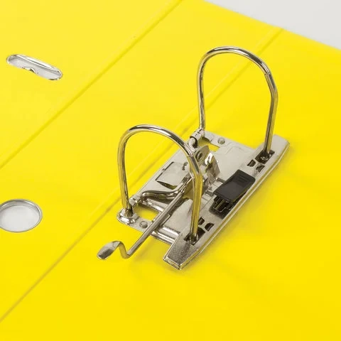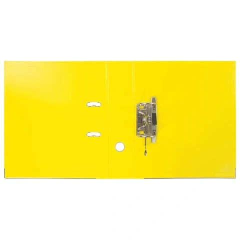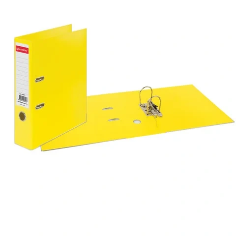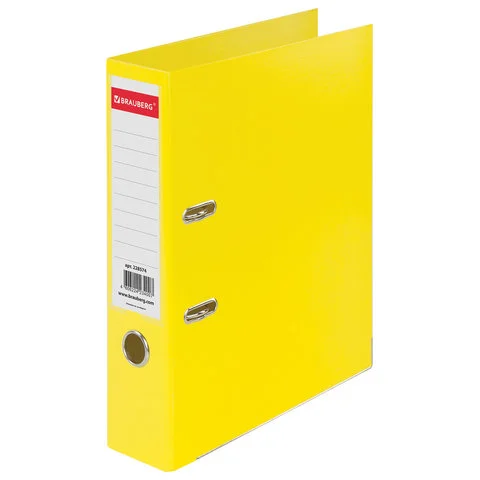 Папка-регистратор BRAUBERG 'EXTRA' в формате А4 вертикальной ориентации - классический вариант хранения документов. Чем толще в папке корешок, тем больше листов можно расположить: ширина корешка в 75 мм позволяет разместить до 500 листов. Изготовлена из плотного картона, ламинированного с двух сторон цветной яркой пленкой из полипропилена, который не имеет резкого запаха, более долговечный и морозоустойчивый. Благодаря такому плотному покрытию допустима влажная уборка изделия. Нижние края папки защищены металлическим уголком, что позволяет служить в 2 раза дольше. Прорези для колец на внешней крышке позволяет оставаться папке закрытой даже при большом количестве бумаг. Яркий желтый цвет папки-регистратора серии 'EXTRA' - смелое решение, чтобы разбавить серые рабочие будни.