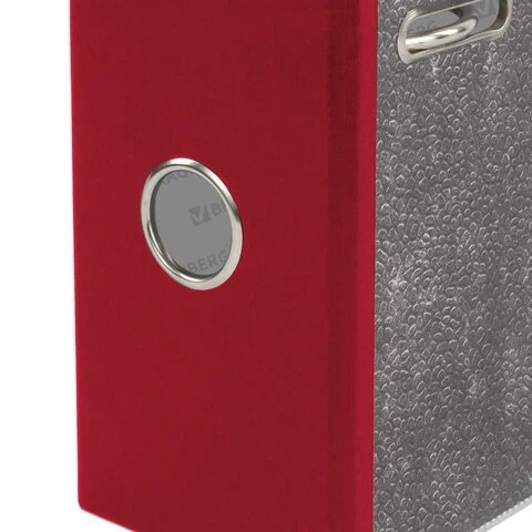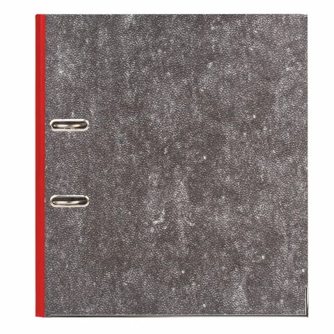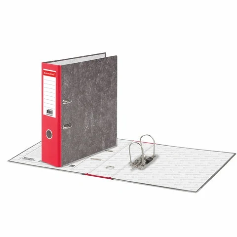 Папка формата А4 с вертикальной ориентацией изготовлена из высококачественного износоустойчивого картона с покрытием под 'мрамор'. Ширина корешка в 80 мм позволяет разместить до 600 листов. Нижние края папки защищены металлическими уголками, что увеличивает срок службы в 2 раза. Прорези для колец на внешней крышке позволяют оставаться папке закрытой даже при большом количестве бумаг, а надежный арочный механизм легко справляется с ежедневными нагрузками. Красный корешок снабжен этикеткой для маркировки содержимого, что позволяет структурировать информацию.