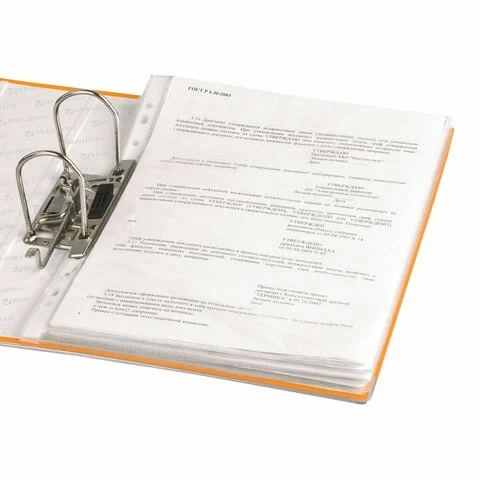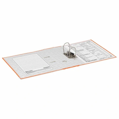 Папка формата А4 с вертикальной ориентацией изготовлена из качественного износоустойчивого картона, с обеих сторон покрытого ПВХ. Благодаря такому плотному покрытию допустима влажная уборка изделия. Ширина корешка в 80 мм позволяет разместить до 600 листов. Нижние края папки защищены металлическими уголками, что увеличивает срок службы в 2 раза. Прорези для колец на внешней крышке позволяют оставаться папке закрытой даже при большом количестве бумаг, а надежный арочный механизм легко справляется с ежедневными нагрузками. Корешок снабжен этикеткой для маркировки содержимого, что позволяет структурировать информацию. Такая папка станет незаменимым помощником для работников с документацией, а сочный оранжевый цвет папки-регистратора выделит ее в ряду других.