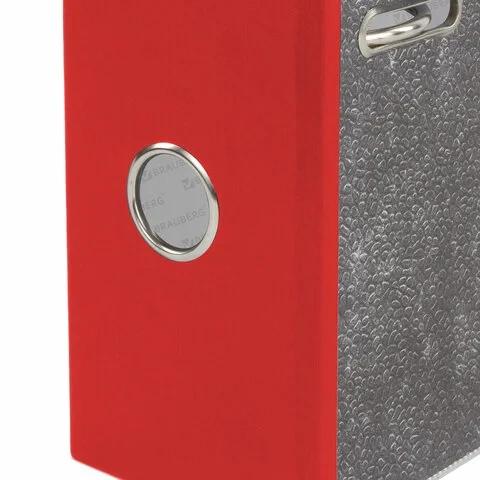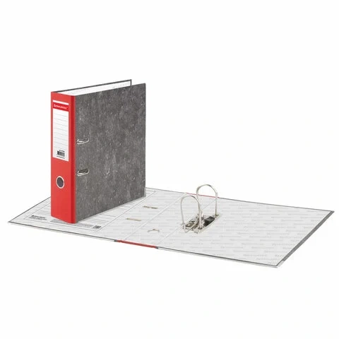 Папка формата А4 с вертикальной ориентацией изготовлена из высококачественного износоустойчивого картона с покрытием под 'мрамор'. Ширина корешка в 75 мм позволяет разместить до 550 листов. Нижние края папки защищены металлическими уголками, что увеличивает срок службы в 2 раза. Прорези для колец на внешней крышке позволяют оставаться папке закрытой даже при большом количестве бумаг, а надежный арочный механизм легко справляется с ежедневными нагрузками. Красный корешок снабжен этикеткой для маркировки содержимого, что позволяет структурировать информацию.