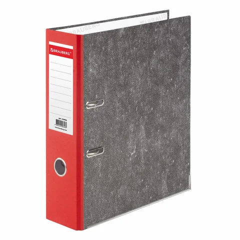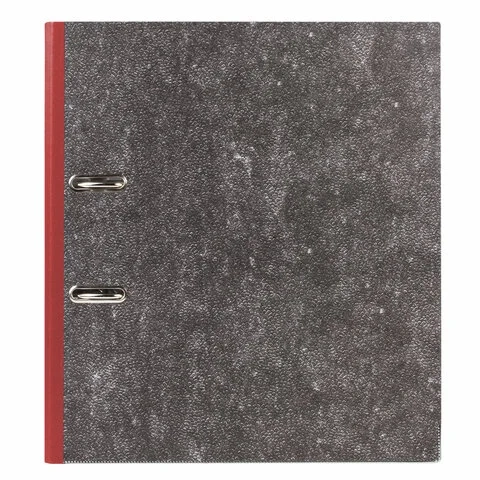 Папка-регистратор А4 Brauberg Стандарт черный мрамор, 75мм, красный корешок, 220988