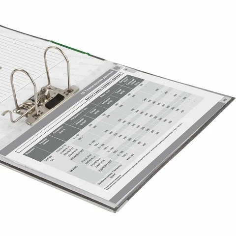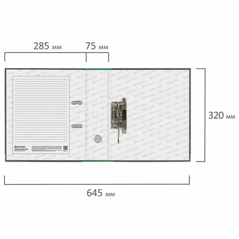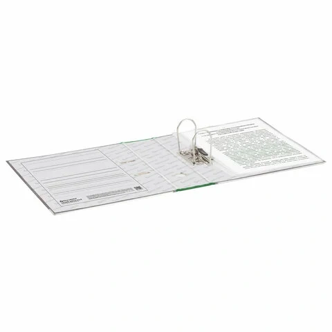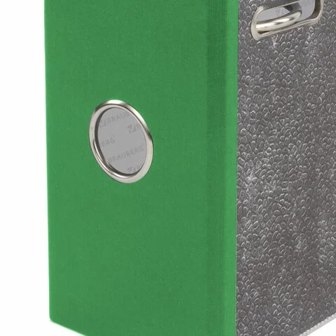 Папка формата А4 с вертикальной ориентацией изготовлена из высококачественного износоустойчивого картона с покрытием под 'мрамор'. Ширина корешка в 75 мм позволяет разместить до 550 листов. Нижние края папки защищены металлическими уголками, что увеличивает срок службы в 2 раза. Прорези для колец на внешней крышке позволяют оставаться папке закрытой даже при большом количестве бумаг, а надежный арочный механизм легко справляется с ежедневными нагрузками. Зеленый корешок снабжен этикеткой для маркировки содержимого, что позволяет структурировать информацию.