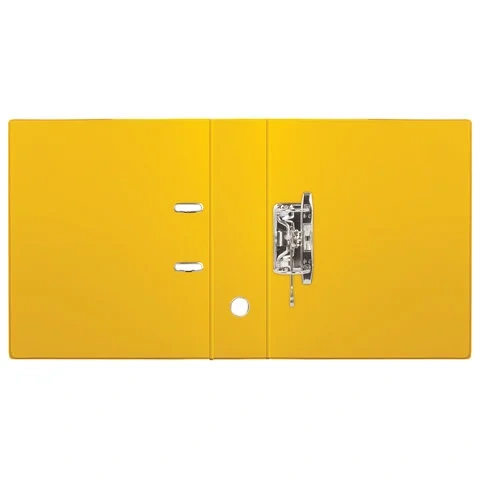 Папка формата А4 с вертикальной ориентацией изготовлена из качественного износоустойчивого картона с ПВХ покрытием с обеих сторон. Благодаря такому плотному покрытию допустима влажная уборка изделия. Ширина корешка в 70 мм позволяет разместить до 500 листов.Прорези для колец на внешней крышке позволяют оставаться папке закрытой даже при большом количестве бумаг, а надежный арочный механизм легко справляется с ежедневными нагрузками. Корешок снабжен этикеткой для маркировки содержимого, что позволяет структурировать информацию. Такая папка станет незаменимым помощником для работников с документацией, а яркий желтый цвет папки-регистратора выделит ее в ряду других.