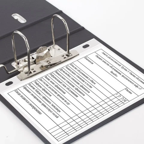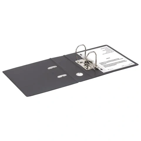 Папка формата А5 с вертикальной ориентацией изготовлена из качественного износоустойчивого картона с ПВХ покрытием с обеих сторон. Благодаря такому плотному покрытию допустима влажная уборка изделия. Ширина корешка в 70 мм позволяет разместить до 500 листов. Прорези для колец на внешней крышке позволяют оставаться папке закрытой даже при большом количестве бумаг, а надежный арочный механизм легко справляется с ежедневными нагрузками. Корешок снабжен этикеткой для маркировки содержимого, что позволяет структурировать информацию. Такая папка станет незаменимым помощником для работников с документацией. Выполнена в черном цвете.