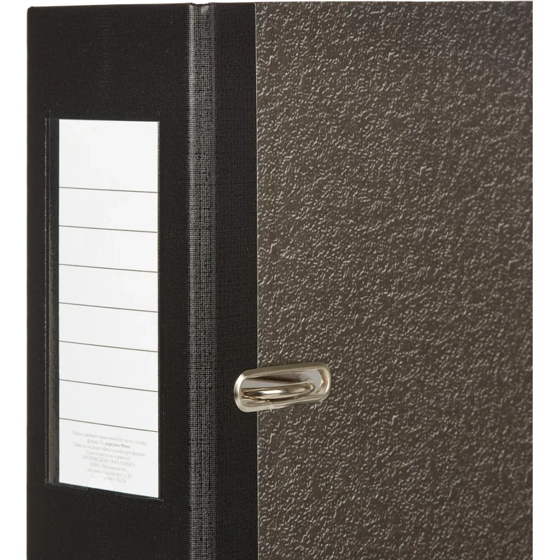 Папка-регистратор Attache 90 мм с бумвинильным корешком черного цвета изготовлена из плотного картона, с внешней стороны покрыта бумагой под мрамор. На корешке шириной 90 мм есть карман с этикеткой и кольцо для удобного захвата. Вмещает до 750 листов стандартной плотности формата А4. Папки-регистраторы используются в офисах, учебных заведениях или дома для удобного хранения и организации большого количества документов. Они помогут сохранить порядок и обеспечат удобный доступ к нужной информации.