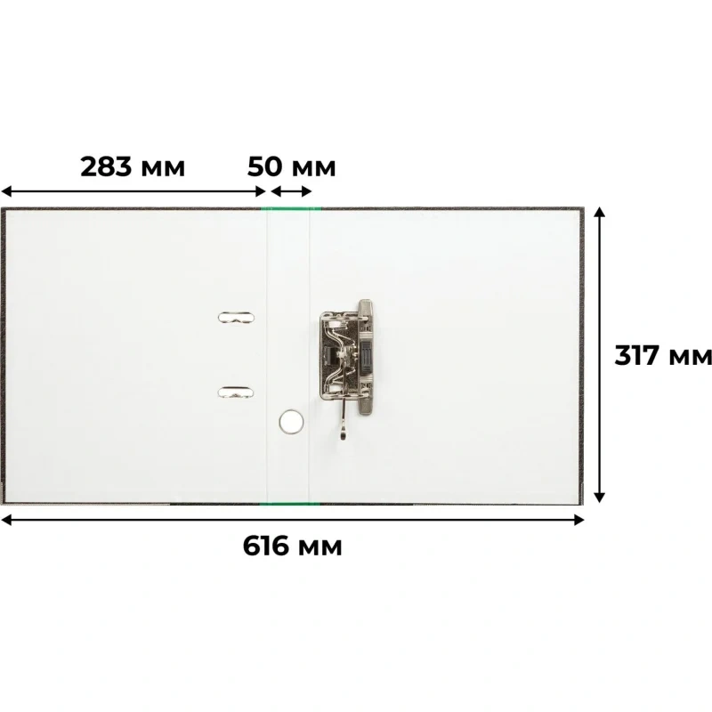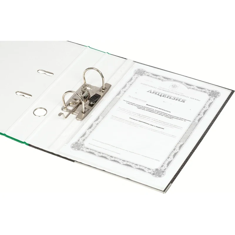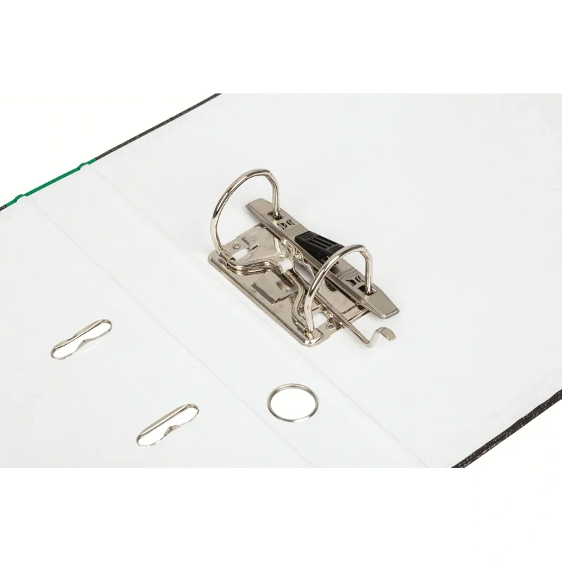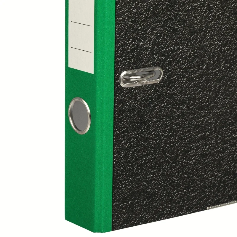 Папка-регистратор Attache (Attache Economy) с арочным механизмом изготовлена из плотного картона, внешняя и внутренняя стороны покрыты бумагой. Формат А4. Арочный механизм произведён в Чехии. Цвет бумажного корешка — зелёный, ширина — 50 мм. Есть удобное кольцо для захвата. Папка-регистратор вмещает до 350 листов стандартной плотности. Папка имеет защиту по нижнему краю.