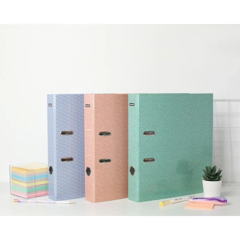 Папка регистратор Attache Fleur с арочным механизмом оранжевого цвета (коралловый оттенок) изготовлена из плотного картона покрытого ламинированной бумагой. Формат А4.