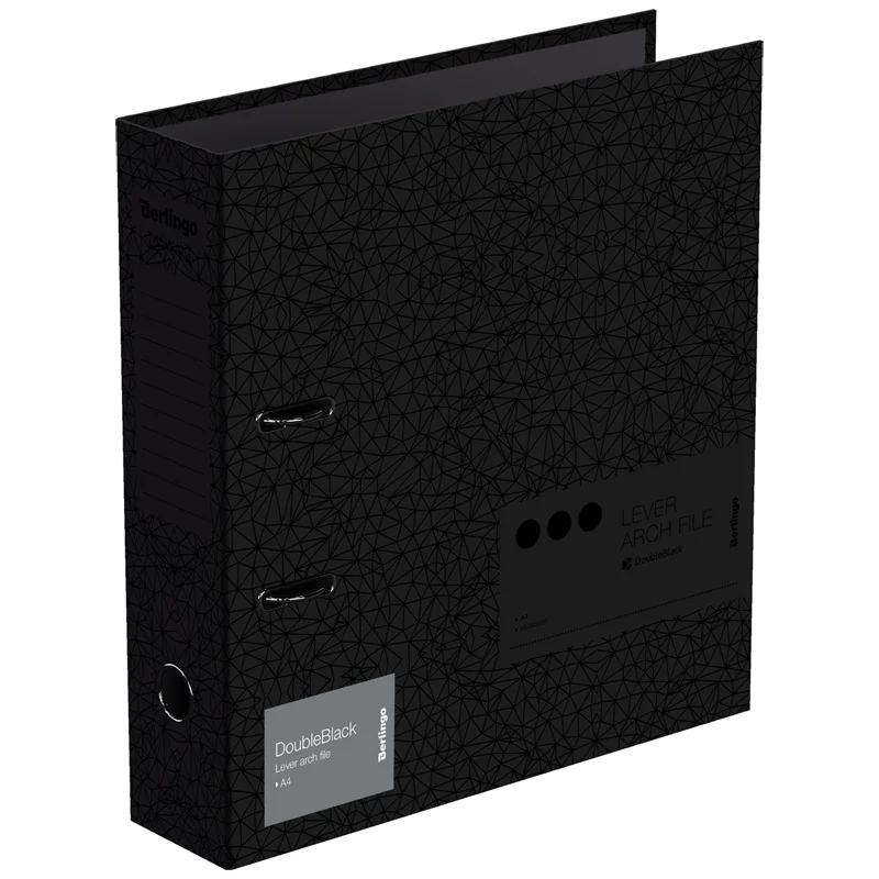 Папка-регистратор с арочным механизмом из жёсткого износостойкого картона с покрытием из матовой ламинированной бумаги. Папка черного цвета с рельефным рисунком УФ-лаком. Выгодно отличается надёжным арочным механизмом черного цвета и черной фурнитурой. Эффективно экономит офисное пространство, идеальна для создания архива. Конструкция разработана с учётом всех особенностей эксплуатации. На корешке есть поле для маркировки, где можно делать записи специальными ручками и карандашами для письма на черной бумаге.