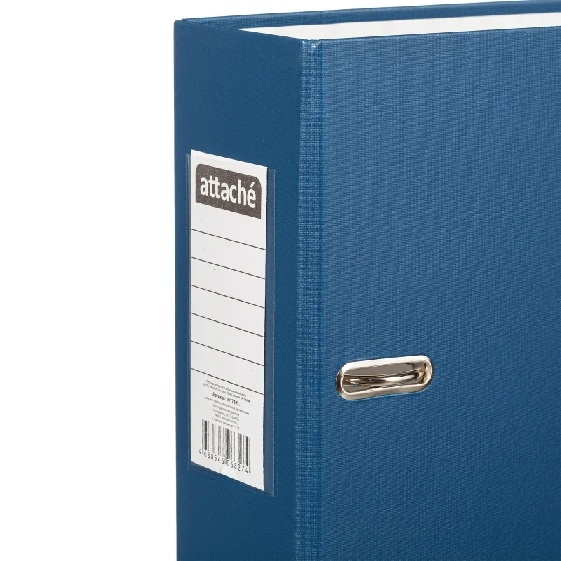 Папка-регистратор Attache Selection из коллекции ’Экономи’ с арочным механизмом изготовлена из плотного картона, с внешней стороны обтянута бумвинилом синего цвета. На корешке шириной 90 мм есть карман с этикеткой и кольцо для удобного захвата. Папка вмещает до 750 листов. На верхней части предусмотрены кольца, благодаря которым папка остается закрытой даже при большом количестве документов внутри. Такая папка станет незаменимым инструментом для удобного хранения и организации документов в офисах, государственных учреждениях или дома.
