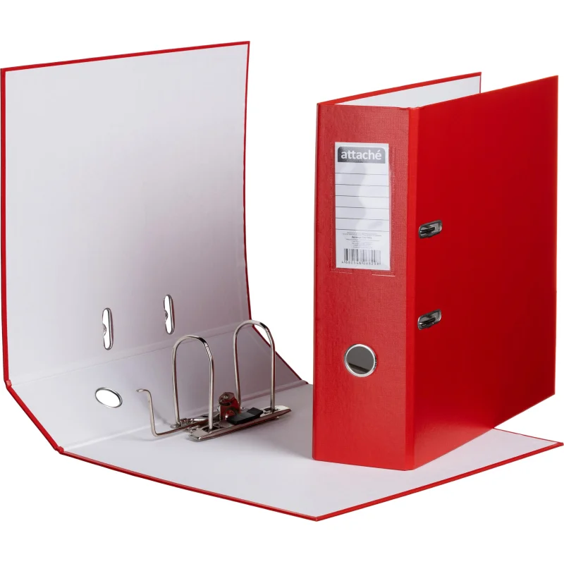 Папка-регистратор Attache Selection из коллекции ’Экономи’ с арочным механизмом изготовлена из плотного картона, с внешней стороны обтянута бумвинилом красного цвета. На корешке шириной 90 мм есть карман с этикеткой и кольцо для удобного захвата. Папка вмещает до 750 листов. На верхней части предусмотрены кольца, благодаря которым папка остается закрытой даже при большом количестве документов внутри. Такая папка станет незаменимым инструментом для удобного хранения и организации документов в офисах, государственных учреждениях или дома.