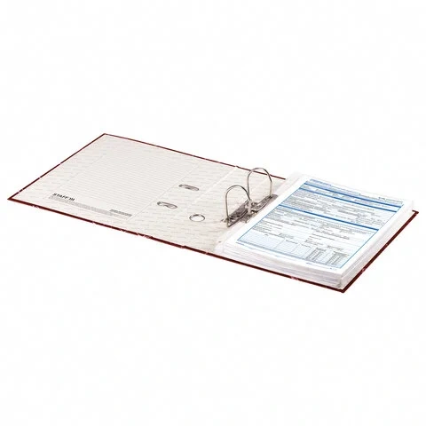 Папка формата А4 с вертикальной ориентацией изготовлена из качественного картона с покрытием под 'мрамор'. Ширина корешка в 70 мм позволяет разместить до 500 листов. Прорези для колец на внешней крышке позволяют оставаться папке закрытой даже при большом количестве бумаг, а надежный арочный механизм легко справляется с ежедневными нагрузками. Корешок снабжен этикеткой для маркировки содержимого, что позволяет структурировать информацию.