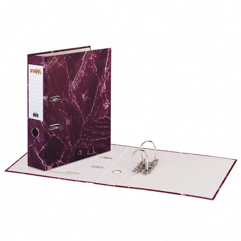 Папка-регистратор STAFF БЮДЖЕТ с мраморным покрытием, 70 мм, без уголка, красная, 229619