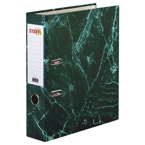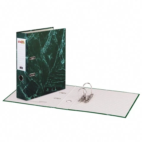 Папка-регистратор STAFF БЮДЖЕТ с мраморным покрытием, 70 мм, без уголка, зеленая, 229620