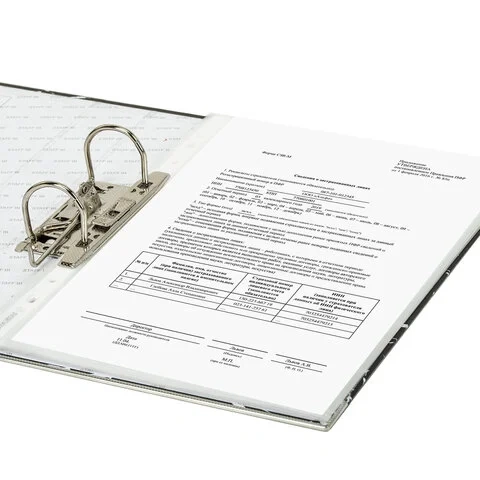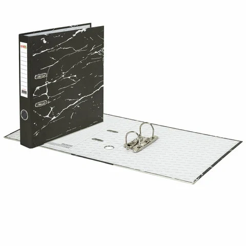 Папка формата А4 с вертикальной ориентацией изготовлена из высококачественного износоустойчивого картона с покрытием под 'мрамор'. Ширина корешка 50 мм позволяет разместить до 350 листов. Нижние края папки защищены металлическими уголками, что в 2 раза увеличивает срок службы изделия. Прорези для колец на внешней крышке позволяют папке оставаться закрытой даже при большом количестве бумаг, а надежный арочный механизм легко справляется с ежедневными нагрузками. Корешок снабжен этикеткой для маркировки содержимого, что позволяет структурировать информацию.