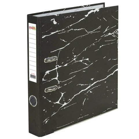 Папка-регистратор STAFF 'Profit' с мраморным покрытием, 50 мм, с уголком, черная, СЪЕМНЫЙ МЕХАНИЗМ,
