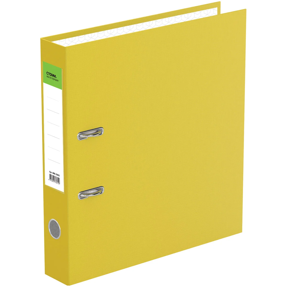 Папка–регистратор «СТАММ» серии «Стандарт» размером А4 (320*290*50 мм) с обложкой из жесткого износостойкого картона с односторонним покрытием из бумвинила. Вместимость папки – 450 листов, ширина корешка – 50 мм. Цвет – желтый. Конструкция разработана с учетом всех особенностей эксплуатации. Папка выгодно отличается надежным арочным механизмом из качественного металла, наличием кармана на корешке со сменным информационным ярлыком для маркировки, полем для записей на внутренней стороне обложки и отверстием для удобного снятия с полки. Папка предназначена для транспортировки, упорядочивания и хранения бумаг.