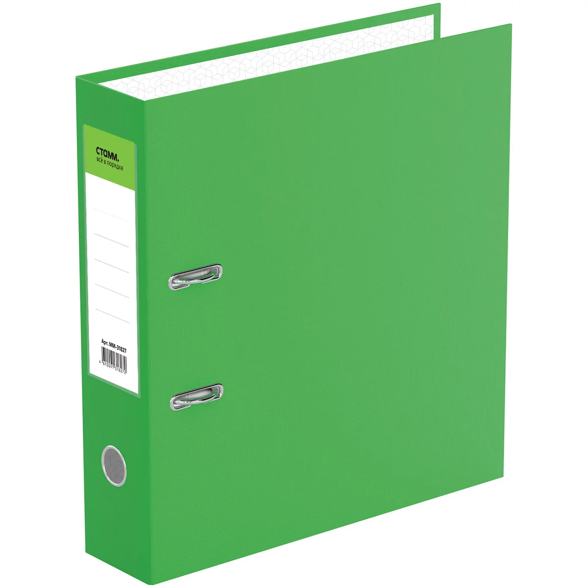 Папка-регистратор «СТАММ» серии «Стандарт» формата А4 с арочным механизмом идеальна для создания архива и экономии офисного пространства. Папка вмещает до 550 листов. Размер папки – 320*290*70 мм. Ориентация папки – вертикальная. Ширина корешка составляет 70 мм. Минималистичный классический дизайн: папка выполнена в насыщенном салатовом цвете. Изготовлена из жесткого износостойкого картона с односторонним покрытием из бумвинила. Папка имеет арочный механизм из качественного металла. Конструкция разработана с учетом всех особенностей эксплуатации. Эргономичное отверстие в корешке помогает быстро снять папку с полки. На корешке папки есть карман со сменным информационным ярлыком для маркировки. На внутренней стороне обложки папка-регистратор имеет поле для записи.