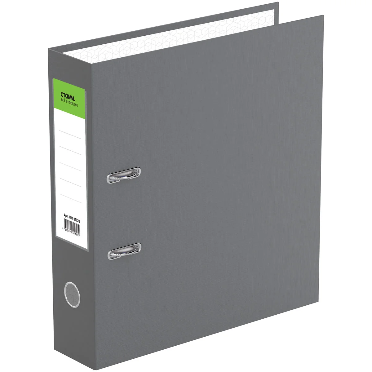 Папка-регистратор «СТАММ» серии «Стандарт» формата А4 с арочным механизмом идеальна для создания архива и экономии офисного пространства. Папка вмещает до 550 листов. Размер папки – 320*290*70 мм. Ориентация папки – вертикальная. Ширина корешка составляет 70 мм. Минималистичный классический дизайн: папка выполнена в насыщенном сером цвете. Изготовлена из жесткого износостойкого картона с односторонним покрытием из бумвинила. Папка имеет арочный механизм из качественного металла. Конструкция разработана с учетом всех особенностей эксплуатации. Эргономичное отверстие в корешке помогает быстро снять папку с полки. На корешке папки есть карман со сменным информационным ярлыком для маркировки. На внутренней стороне обложки папка-регистратор имеет поле для записи.