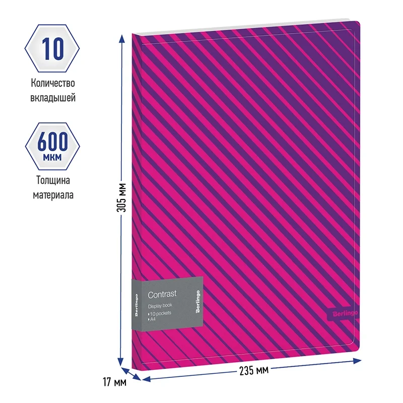 Папка с 10 вкладышами Berlingo 'Contrast', 17мм, 600мкм, с внутр. карманом, с рисунком, фиолетовая