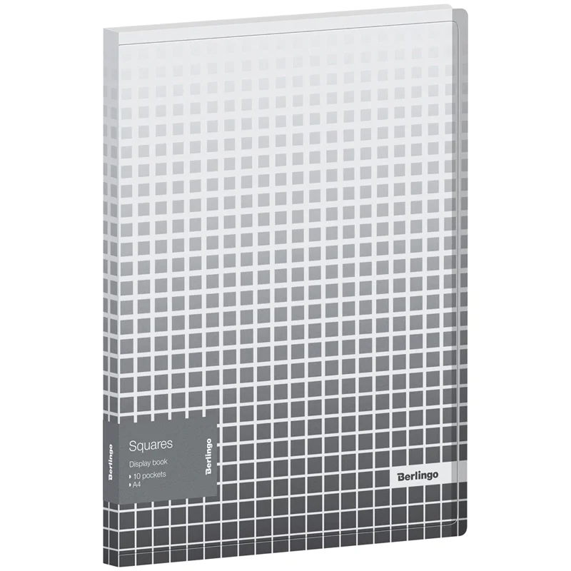 Папка с 10 вкладышами Berlingo 'Squares', 17мм, 600мкм, с внутр. карманом, с черным рисунком