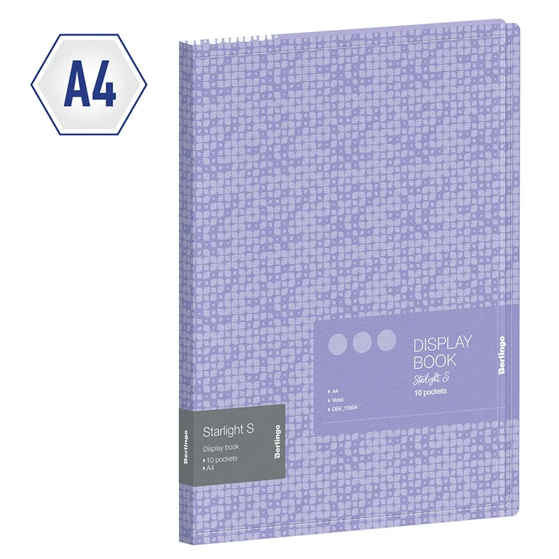 Папка пластиковая с 10 вкладышами Berlingo 'Starlight S' формата А4 фиолетового цвета с рисунком. Полупрозрачная обложка. Изготовлена из высококачественного полипропилена с матовой текстурой поверхности 'песок', на которой не видно отпечатков пальцев и мелких царапин. Предназначена для хранения документов. Толщина обложки 600мкм. Содержит 10 прозрачных листов-карманов увеличенной толщины 30мкм, надежно скрепленных сваркой. На внутренней стороне обложки оснащена плотным прозрачным карманом для удобного хранения мелочей: ручки, заметок, визиток, дисков, флешек и др. Папка вмещает до 100 бумажных листов. Упакована в индивидуальный прозрачный пакет по форме.