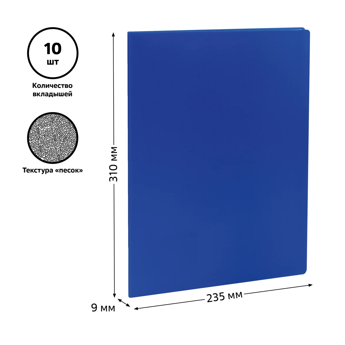 Папка с 10 вкладышами СТАММ А4, 9мм, 500мкм, пластик, синяя
