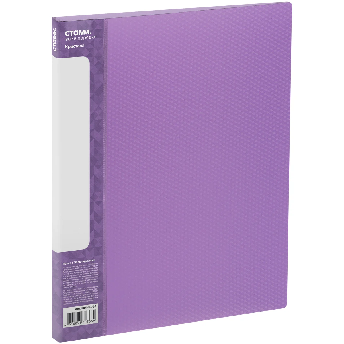Папка с 10 вкладышами СТАММ 'Кристалл' А4, 9мм, 600мкм, пластик, фиолетовая