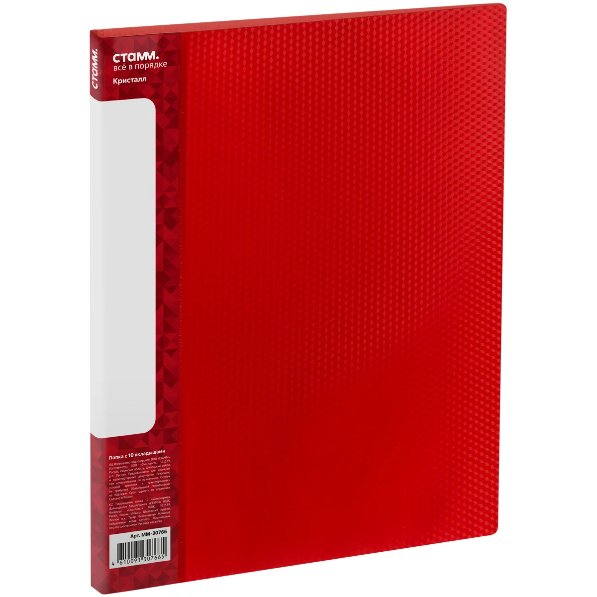 Папка с 10 вкладышами СТАММ 'Кристалл' А4, 9мм, 600мкм, пластик, красная