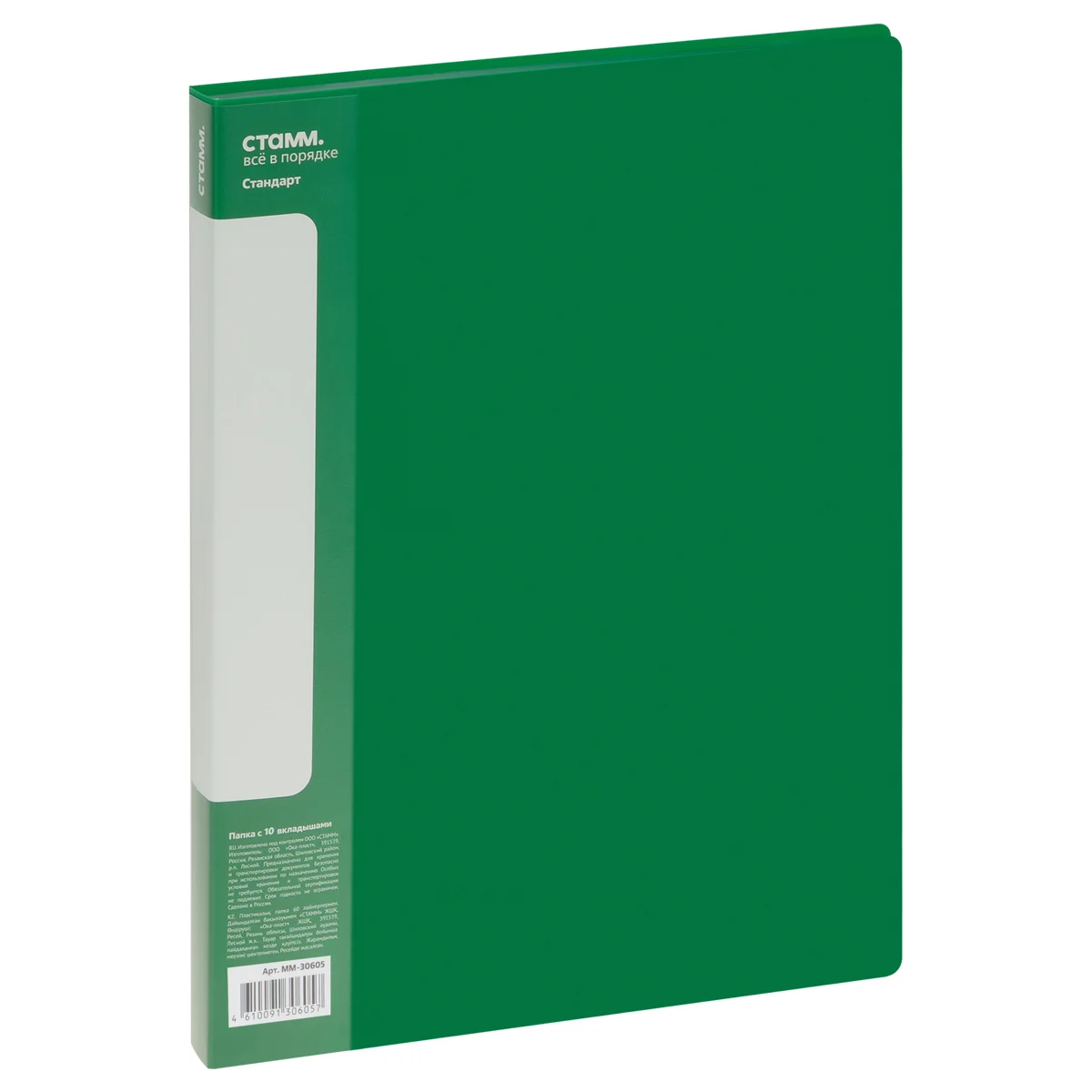 Папка с 10 вкладышами СТАММ 'Стандарт' А4, 9мм, 600мкм, пластик, зеленая