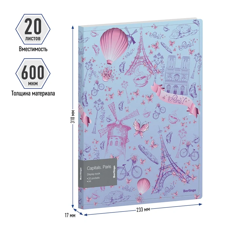 Папка с 20 вкладышами Berlingo 'Capitals. Paris', 17мм, 600мкм, с внутр. карманом, с рисунком