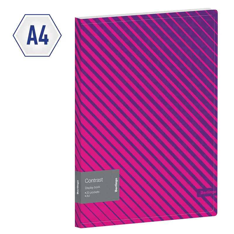 Папка с 20 вкладышами Berlingo 'Contrast', 17мм, 600мкм, с внутр. карманом, с рисунком, фиолетовая