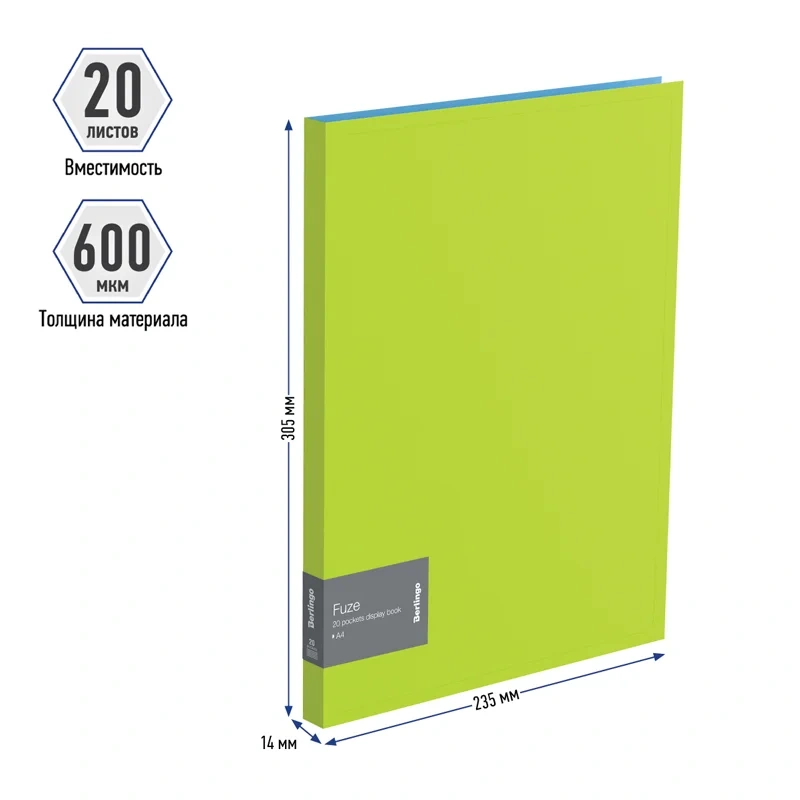 Папка с 20 вкладышами Berlingo 'Fuze', 14мм, 600мкм, салатовая