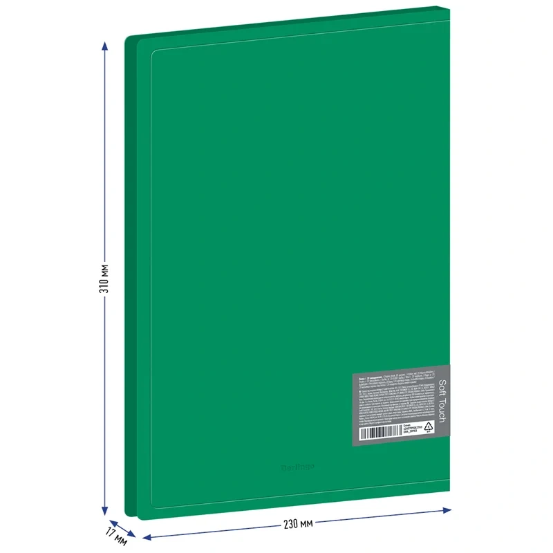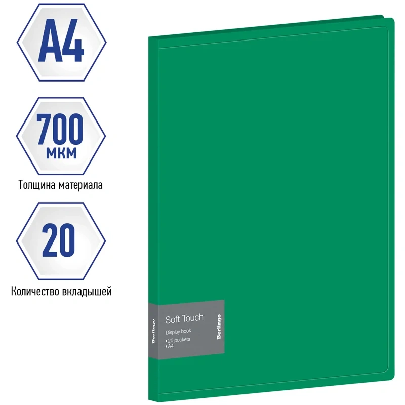 Папка с 20 вкладышами Berlingo 'Soft Touch', 17мм, 700мкм, зеленая, с внутр. карманом