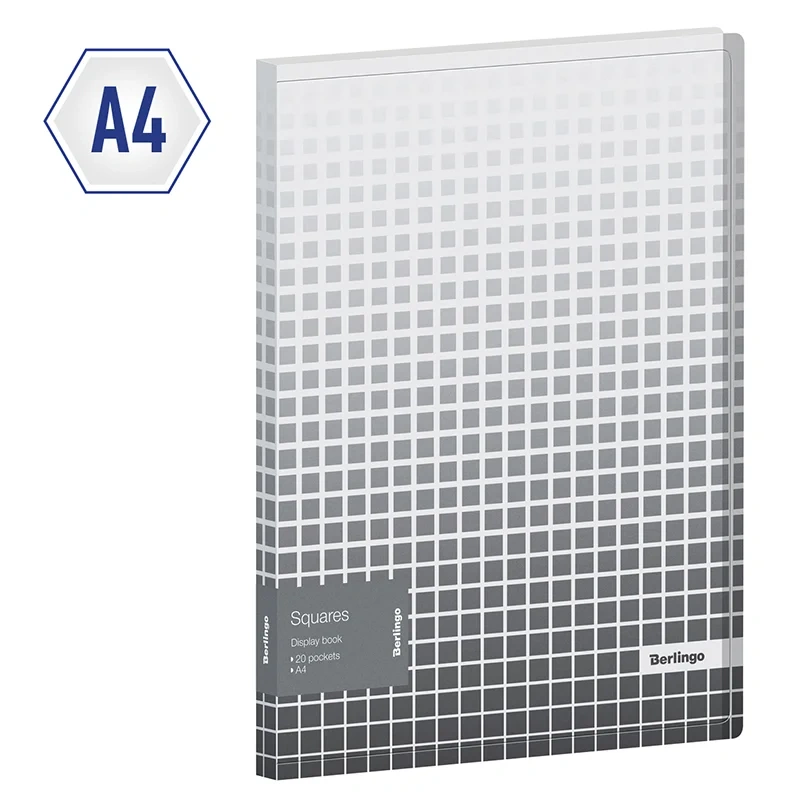 Папка с 20 вкладышами Berlingo 'Squares', 17мм, 600мкм, с внутр. карманом, с черным рисунком