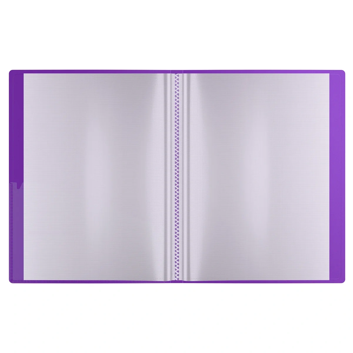 Папка Berlingo Your Way формата А4 содержит 20 вкладышей, которые надёжно защищают листы от повреждений. Листы-карманы увеличенной толщины 30 мкм надежно скреплены сваркой. Папка фиолетового цвета вмещает до 100 бумажных листов. Размер изделия – 310*235*17 мм, ширина корешка – 17 мм, толщина материала – 600 мкм. Изготовлена из высококачественного полипропилена с матовой текстурой поверхности с фирменным тиснением Berlingo, на которой не видно отпечатков пальцев и мелких царапин. На внутренней стороне обложки оснащена плотным прозрачным карманом для удобного хранения мелочей: ручки, заметок, визиток, дисков, флешек и др. Упакована в индивидуальный прозрачный пакет.