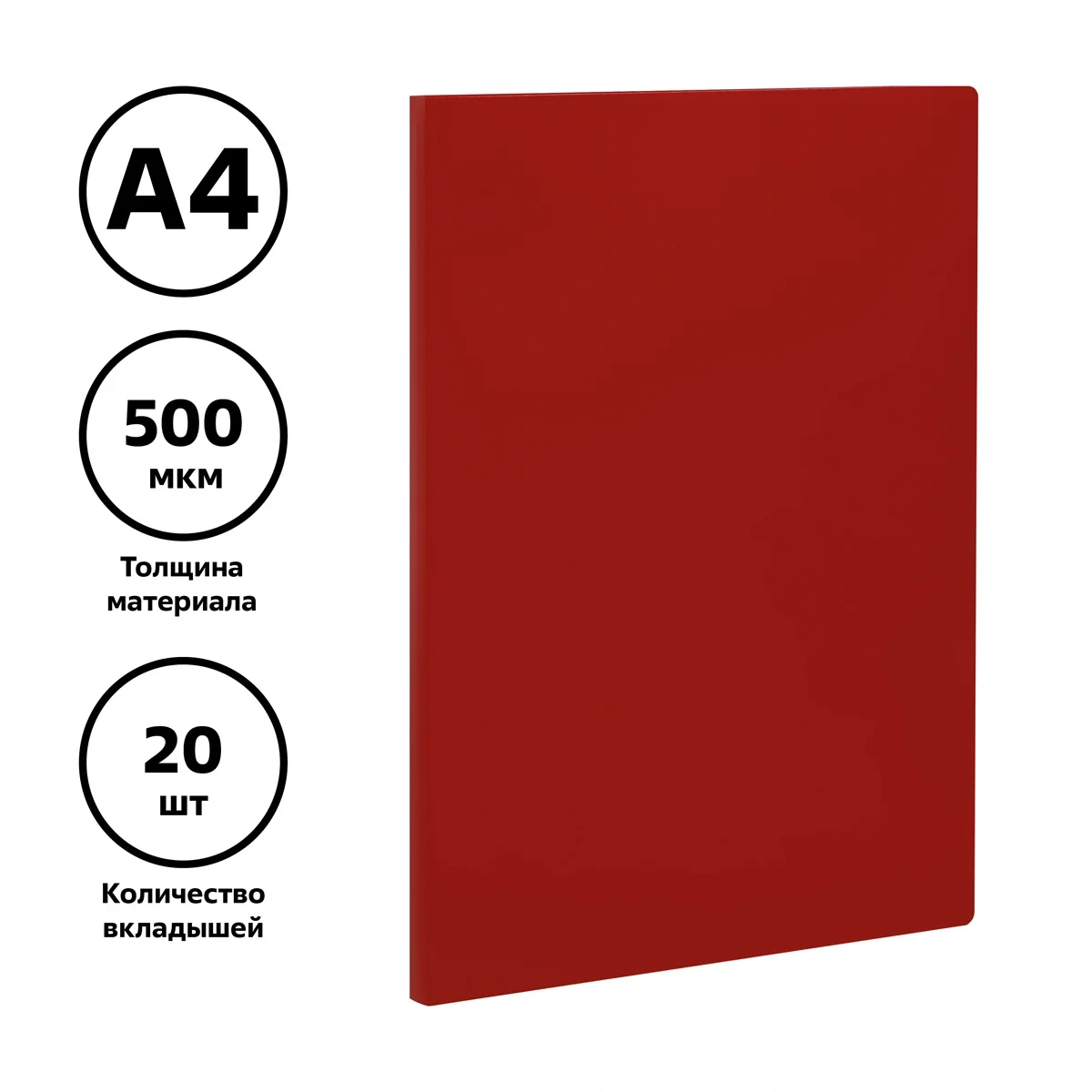Папка с 20 вкладышами СТАММ А4, 14мм, 500мкм, пластик, красная