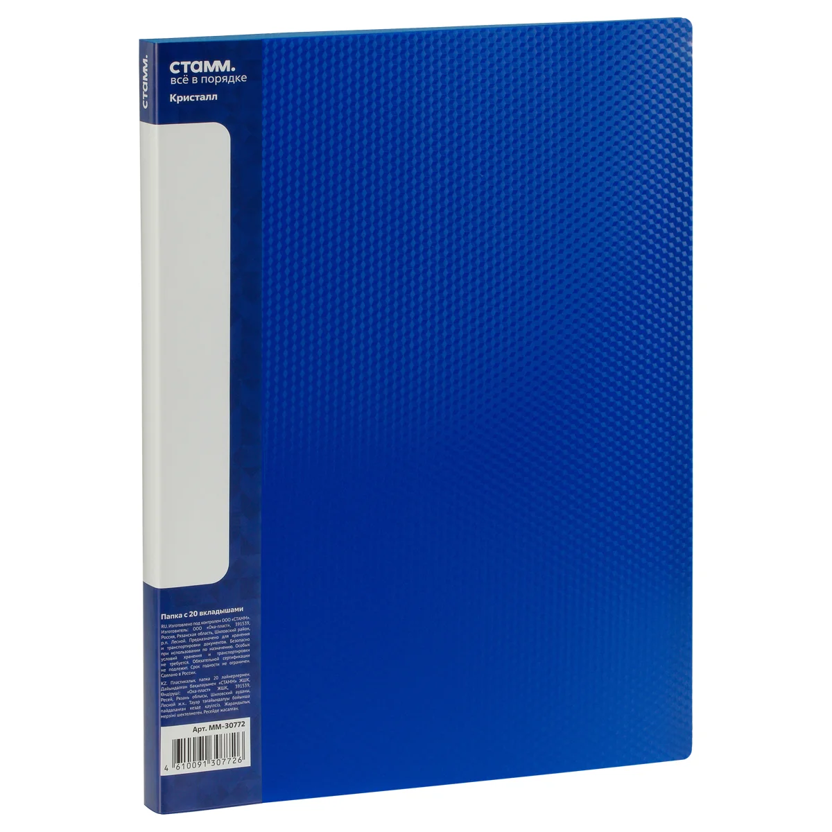 Папка с 20 вкладышами СТАММ 'Кристалл' А4, 14мм, 700мкм, пластик, синяя