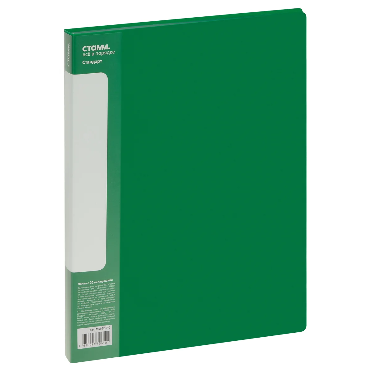 Папка с 20 вкладышами СТАММ 'Стандарт' А4, 14мм, 600мкм, пластик, зеленая