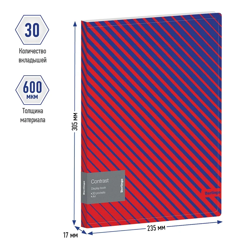 Папка с 30 вкладышами Berlingo 'Contrast', 17мм, 600мкм, с внутр. карманом, с рисунком
